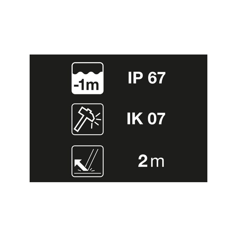 Produkto informacija„Petzl Aria 1“ buvo išbandytas pagal EN/IEC 62262 standartą ir atitinka IK07 reitingą. IK bandymo metu smūgio elementas numetamas iš aiškiai apibrėžto aukščio su apibrėžtu svoriu ir forma ant bandomosios vietos. Be šio bandymo, žibintas taip pat yra atsparus kritimui iki 2 metrų aukščio. Apšvietimo lygį galima nustatyti įjungimo / išjungimo mygtuku. Standartinio apšvietimo režimo šviesos srautas yra 100 liumenų, o maksimalus veikimo laikas – apie 12 valandų. Taip pat yra padidinto apšvietimo parinktis (350 liumenų 2 valandoms) ir ekonominis režimas (7 liumenai 110 valandų). Šviesos srautas: maks. 350 liumenų su 3 AAA / LR03 baterijomis arba maks. 450 liumenų su „Petzl Core“; Atstumas: 70 metrų; Maksimalus veikimo laikas: 110 valandų; Pridedamos baterijos: taip (trys AAA / LR03 baterijos); Svoris su pakavimu. Baterijos: 105 gramai Atsparumas vandeniui: IP67 Atsparumas smūgiams: IK07 (EN/IEC 62262) Apsauga nuo kritimo: 2 metrai (ANSI/PLATO FL 1)