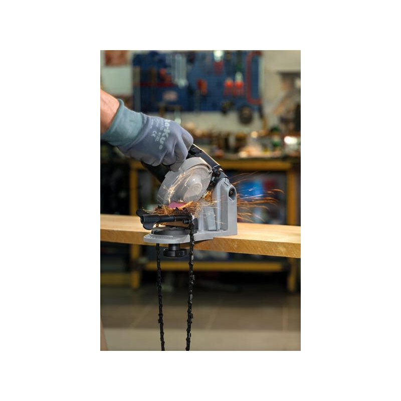 Išsamus aprašymasBaterijomis maitinamas grandinės galąstuvas, montuojamas ant darbastalio. Mažos energijos sąnaudos, greitas įkrovimas greituoju įkrovikliu 230 V-50 Hz. Tinka grandinėms nuo 1/4 colio iki 404 colių.