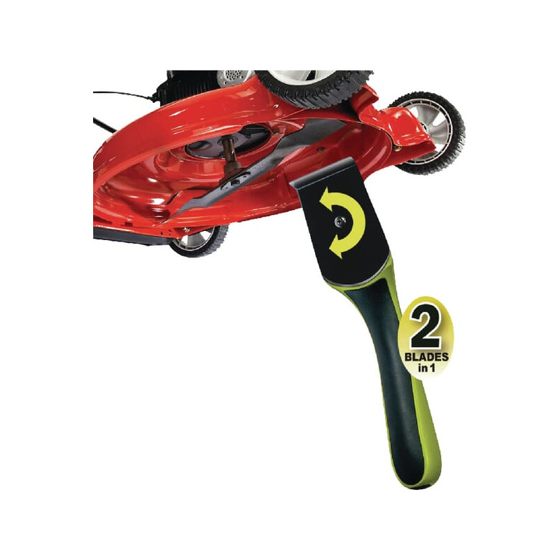 Išsami informacija Plokšti ir lenkti peiliai valo visas vejapjovės agregato vietas „Pivot Quik-Knob™“ rankenėlė, skirta greitam ir lengvam peilio sukimui