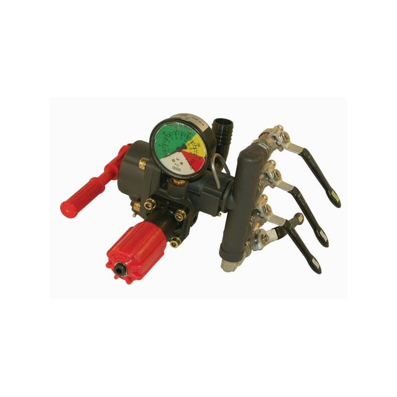 Sudaryta išNuotolinio valdymo blokas su sukamuoju rankenėle darbinio slėgio valdymui ir apvedimuiPristatoma be manometro