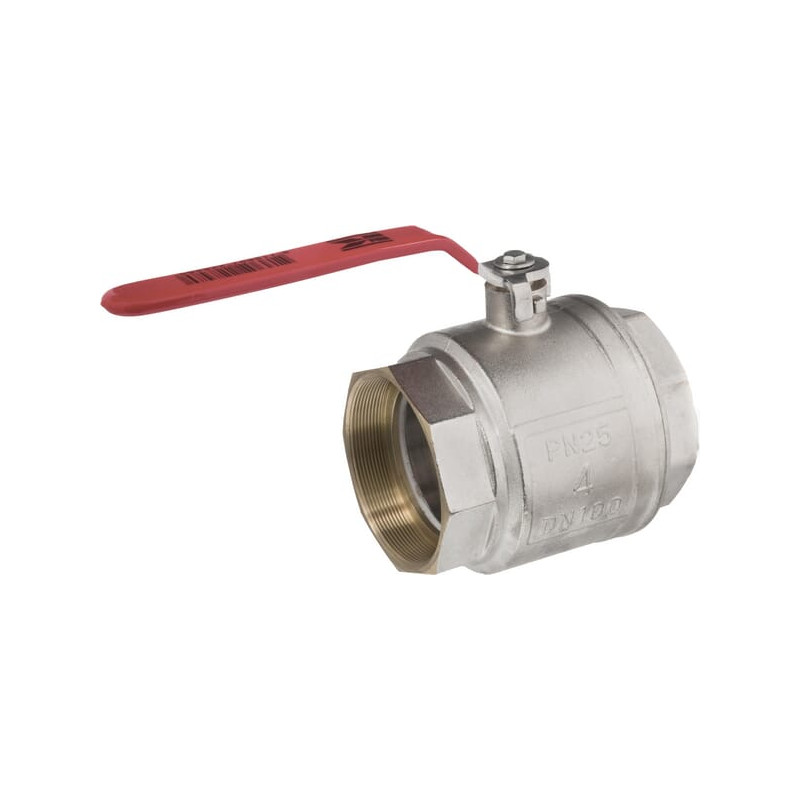 Rutulinis vožtuvas BSP 2x vidinis sriegis 4" + nerūdijančio plieno rankena KS4FKR
