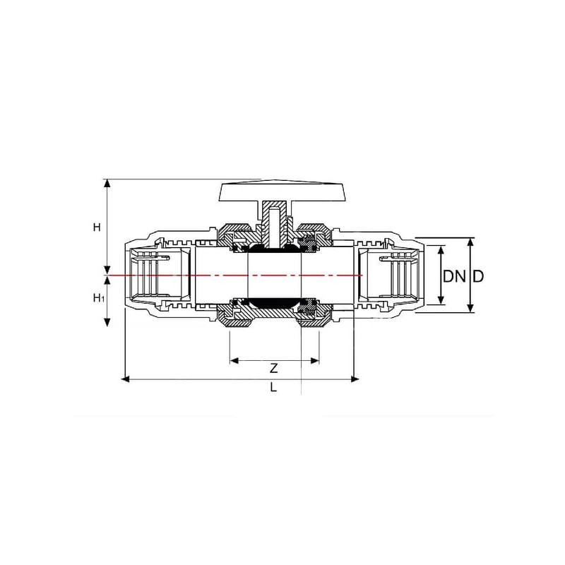PVC rutulinis vožtuvas 2xPE 40mm KS40405GP
