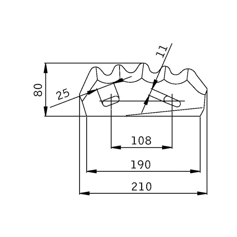 Skersinės skylės ilgis 25 mm