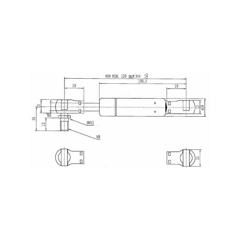Massey Ferguson 4455 CA9748KS Dujinis statramstis L344mm 250N Stabilus